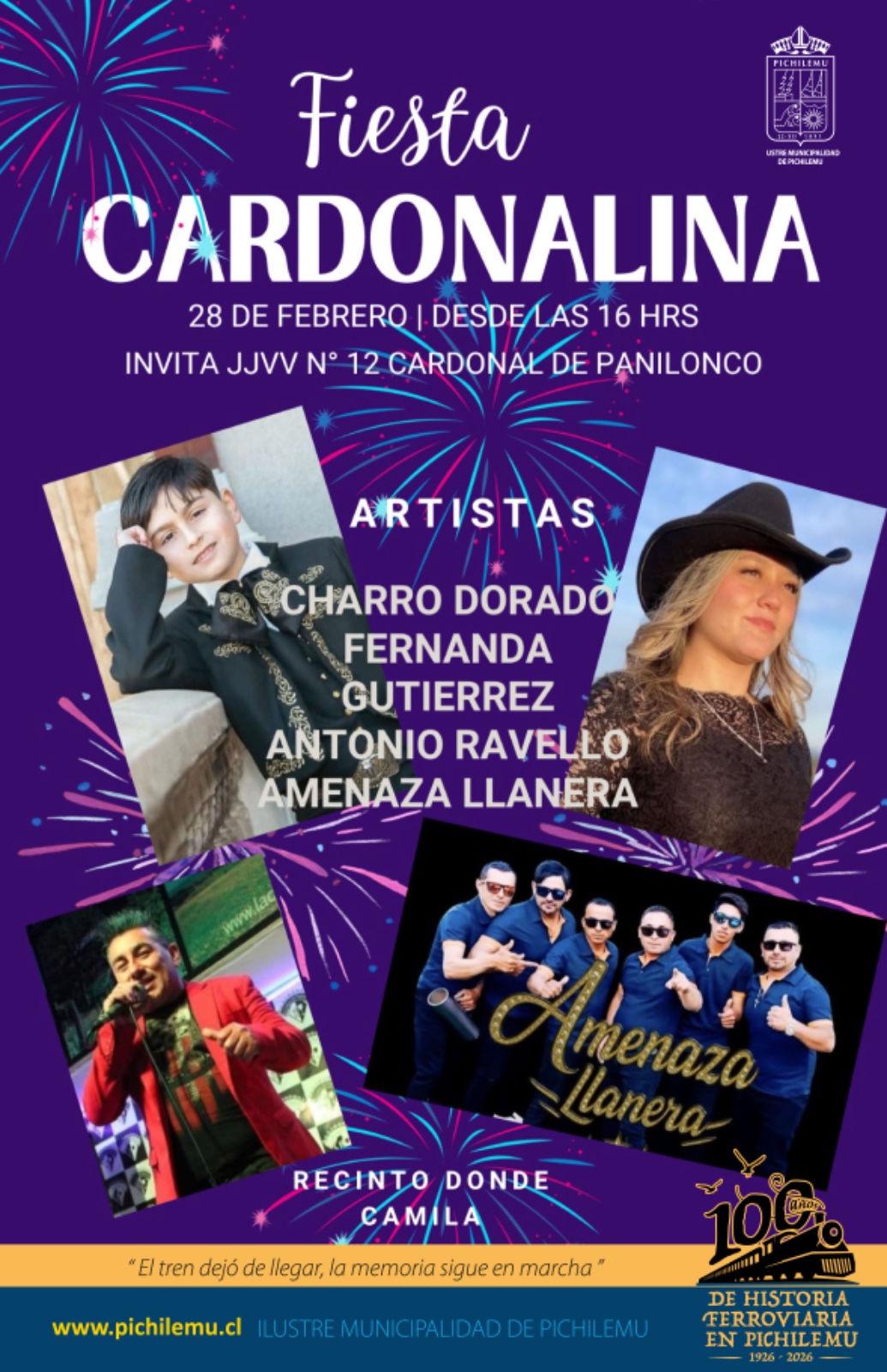 Las actividades se inician con un Bingo que tiene interesantes premios, al alcance de su buena suerte por solo 3 mil pesos el cartón, y que se realizará en el local “Donde Camila”. Parte puntualmente a las 15 horas y termina sí o sí, a las 16 horas; pues en ese mismo recinto se desarrollará la Fiesta Cardonalina, que en su programa tiene a los siguientes artistas: al Charro Dorado, Fernanda Gutiérrez, Antonio Ravello y el grupo Amenaza Llanera.