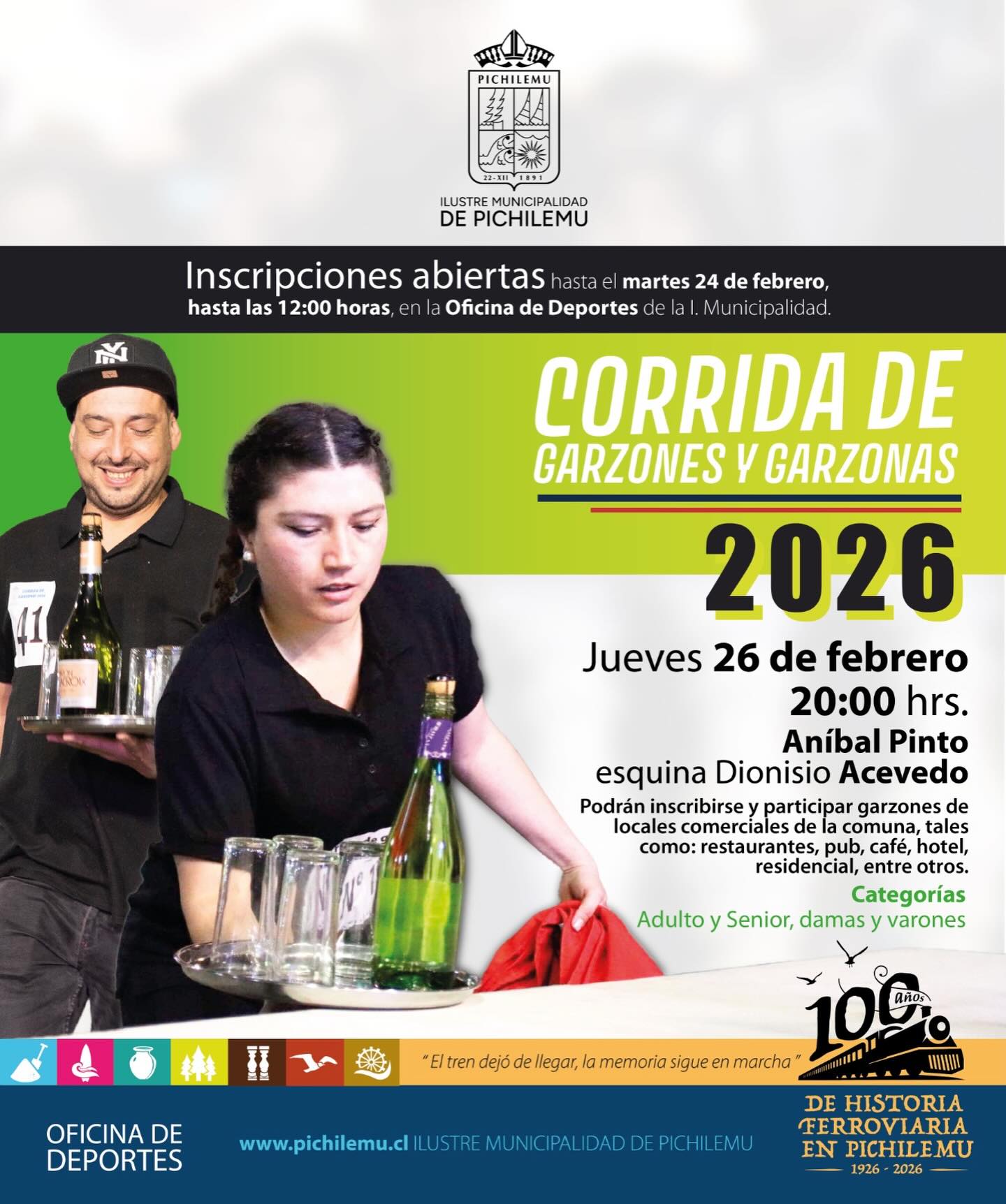 La Ilustre Municipalidad de Pichilemu invita a todas las garzonas y garzones de locales comerciales de nuestra comuna, restaurantes, pub, café, hotel, residencial, entre otros, a participar en esta entretenida y tradicional competencia.