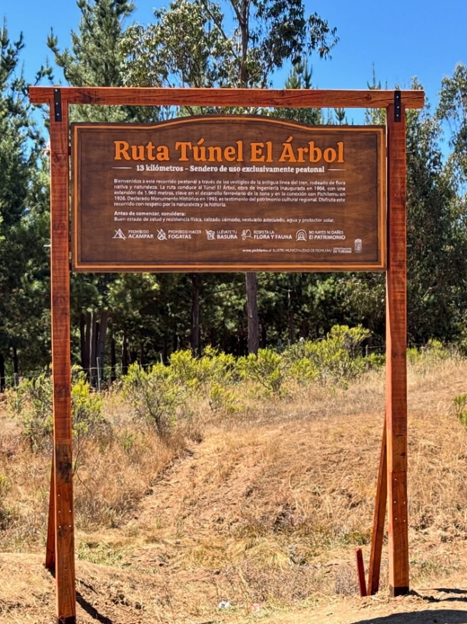 Letreros que señalizan e informan de la ruta turística que lleva al Monumento Histórico “Túnel El Árbol” (1993) repuso el municipio pichilemino, dentro de las actividades celebratorias de los 100 años de la llegada del primer tren de pasajeros a la Estación de Pichilemu. Hecho que sucedió el 5 de enero de 1926.